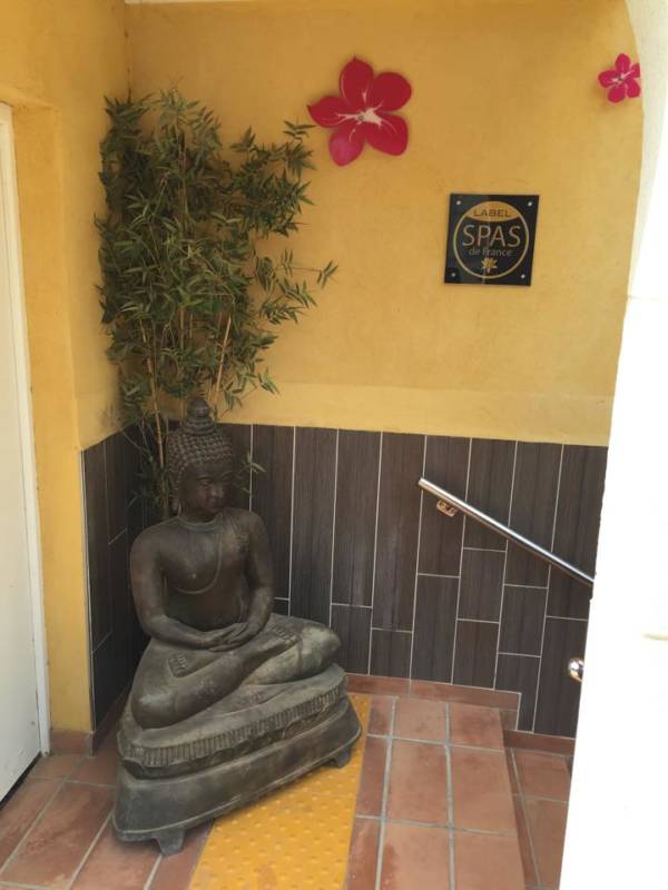 Aphrodite Spa a ouvert ses portes il y a un peu plus d’un an près de Hyères sur la presqu’île de Giens, au niveau du Camping international, face à la mer. Un buddha zen nous accueille à l’entrée, on descend les escaliers pour entrer dans le temple de la détente où nous attendent deux douces et attentionnées employées esthéticiennes. L’institut de beauté mixte, à la lumière tamisée et à la décoration plutôt orientale dans les tons chauds, se compose de :
